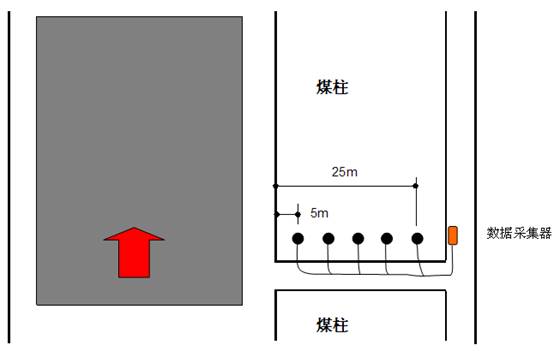 测点布置如图所示。可实现地面在线连续监测,也可以实现井下实时监测、存储,定期采集数据监测。